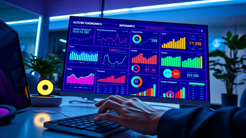 When evaluating altcoin tokenomics, focus on how supply models, inflation controls, and burn mechanisms impact value and decentralization. Fixed supplies create scarcity, while inflationary models may dilute holdings unless carefully managed. Burning tokens can boost scarcity and price, but transparency matters. Controlling inflation and understanding distribution methods help gauge long-term stability. Keep these factors in mind to assess a project’s potential, and exploring more will reveal deeper insights into sustainable tokenomics strategies.