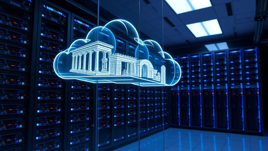 You might wonder if storing cultural heritage in the cloud truly safeguards it for future generations. While some argue that digital archiving risks losing authenticity, recent advances suggest cloud preservation can enhance accessibility and longevity. By embracing this technology, you help guarantee that history remains alive and reachable worldwide. So, consider that perhaps, rather than replacing traditional methods, cloud archiving complements them—making cultural preservation more resilient, inclusive, and future-proof.