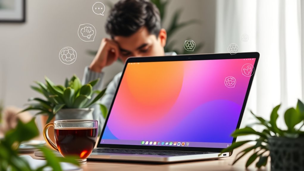 It’s no coincidence that measures like personalized app features and usage limits are in place to prevent digital mental health burnout. When you face technology overload, these strategies boost user engagement without overwhelming you. They encourage breaks, promote mindful usage, and tailor content to your needs. By balancing tech access with well-being safeguards, you’re less likely to experience fatigue, helping you stay committed and supported on your mental health journey.
