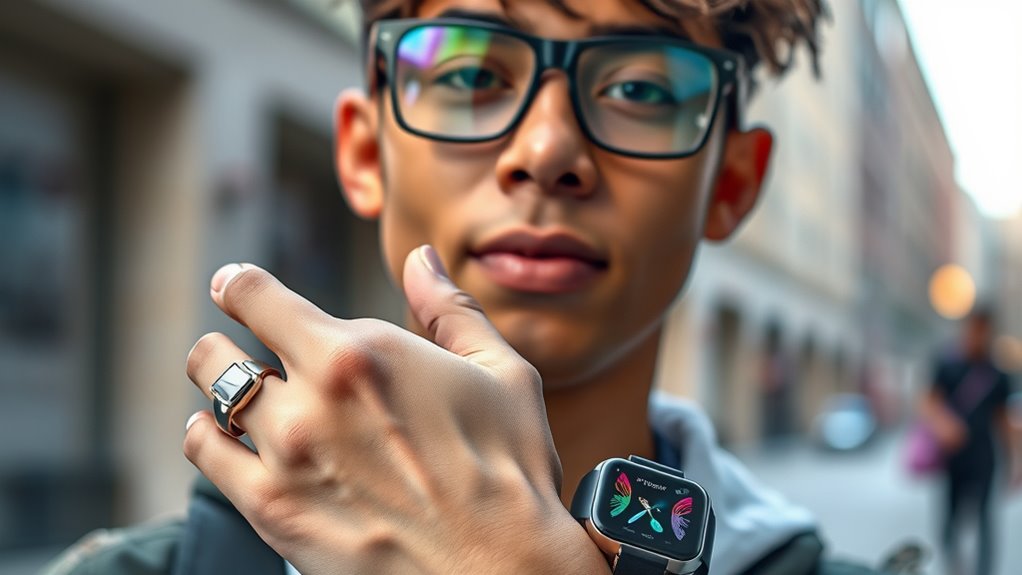 Wearable gadgets influence your social interactions by enhancing non-verbal cues, allowing you to share emotions subtly. They foster emotional connections through real-time feedback, like heart rate or mood indicators, which help you understand others better. This tech encourages more authentic communication, making relationships deeper. You find it easier to connect, empathize, and respond thoughtfully, strengthening bonds and creating more meaningful social experiences.
