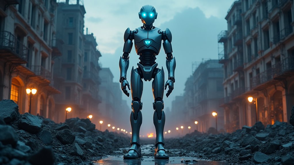 As you ponder AI’s role, remember it’s both a beacon of progress and a potential peril. Like a double-edged sword, its power can uplift or undo us. You stand at a crossroads, where innovation promises salvation but also risks downfall. Will you harness AI’s promise wisely, or let it slip into chaos? The choice is yours—hope or harm—each path shaped by your actions today. The future hinges on how you navigate this delicate balance.