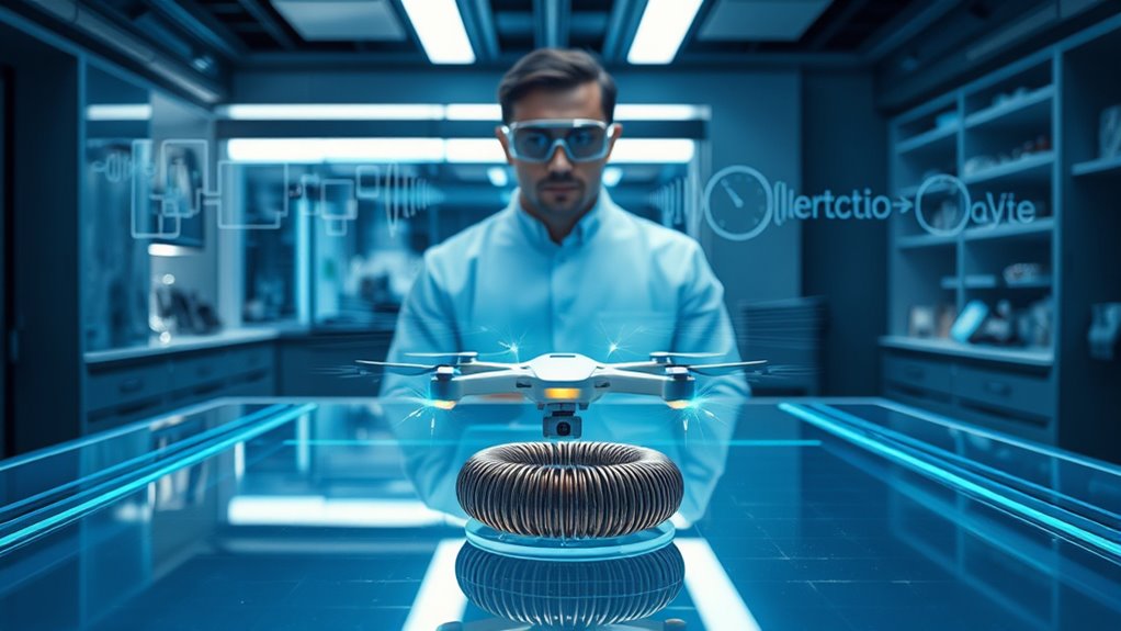 The core principle involves different technologies working together to transmit energy efficiently. Infrared, similar to the remote controls you use, can direct power precisely to a device. Resonant coupling involves tuning coils to resonate at the same frequency, creating a more efficient transfer of energy over a distance. Electromagnetic induction, the basis of current wireless chargers, can be adapted for longer ranges, but it’s still limited. Beamforming, a technique that focuses energy into a narrow beam, helps direct power more accurately, reducing waste and increasing efficiency. Advanced materials like silver-plated copper or aluminum are also essential because they minimize weight and resistance, enhancing the overall energy transfer process. Research in metamaterials is exploring ways to improve wireless energy transfer over longer distances by manipulating electromagnetic waves more effectively. Additionally, ongoing innovations in wireless power transfer efficiency aim to overcome current limitations and make the technology more viable for everyday use.