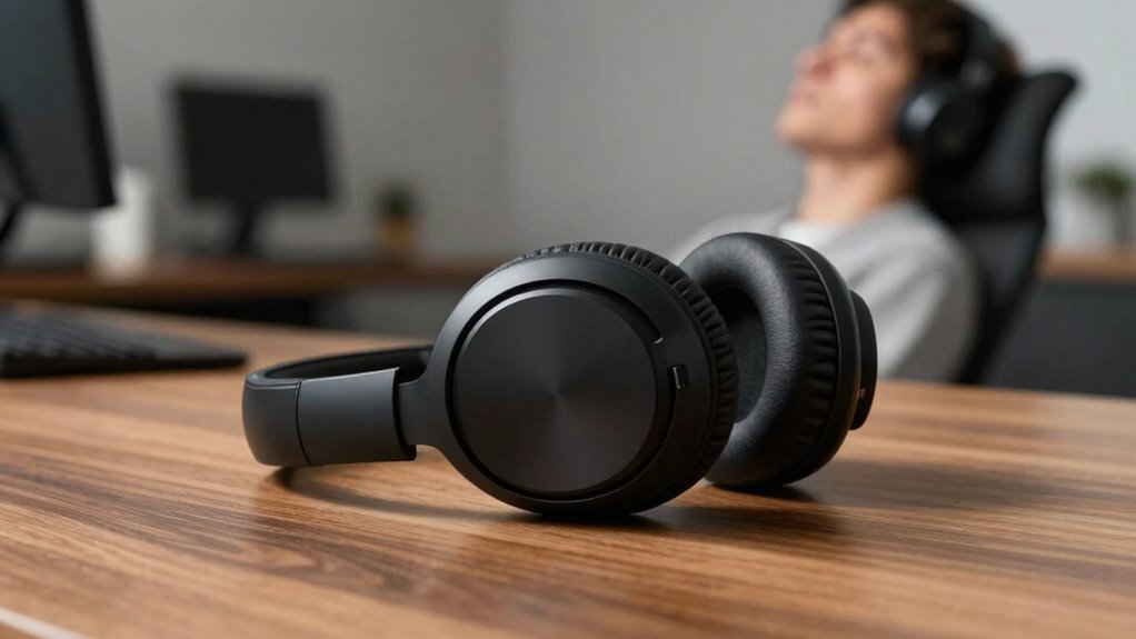 Noise-cancelling headphones don’t work equally well in all environments. They excel at reducing ambient noise like engine hum or chatter, but struggle with sudden or high-frequency sounds. In noisy environments, you might notice some ambient noise still slipping through, which can affect user comfort. For the best experience, choose headphones with adaptive noise-cancelling features, ensuring ideal noise reduction and comfort regardless of where you are.