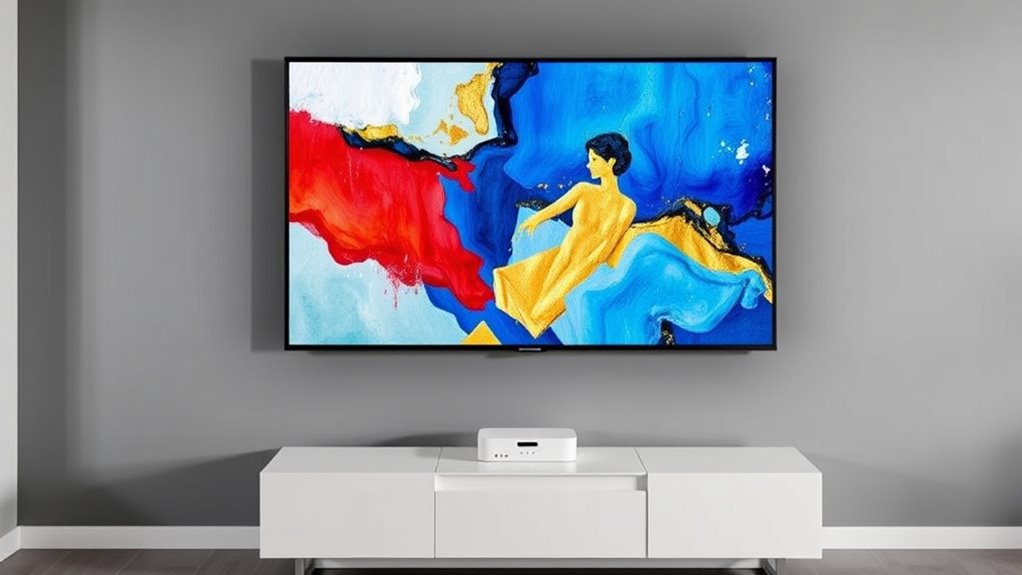 You’ll find that the Samsung Frame Pro is designed for energy efficiency, helping you save on power consumption. Its advanced technology adjusts brightness based on ambient light, which reduces energy use while maintaining excellent picture quality. The TV’s power consumption varies depending on usage, but overall, it’s built to be eco-friendly. By using features like motion sensors, you can further optimize energy efficiency, making it a smart choice for your home.