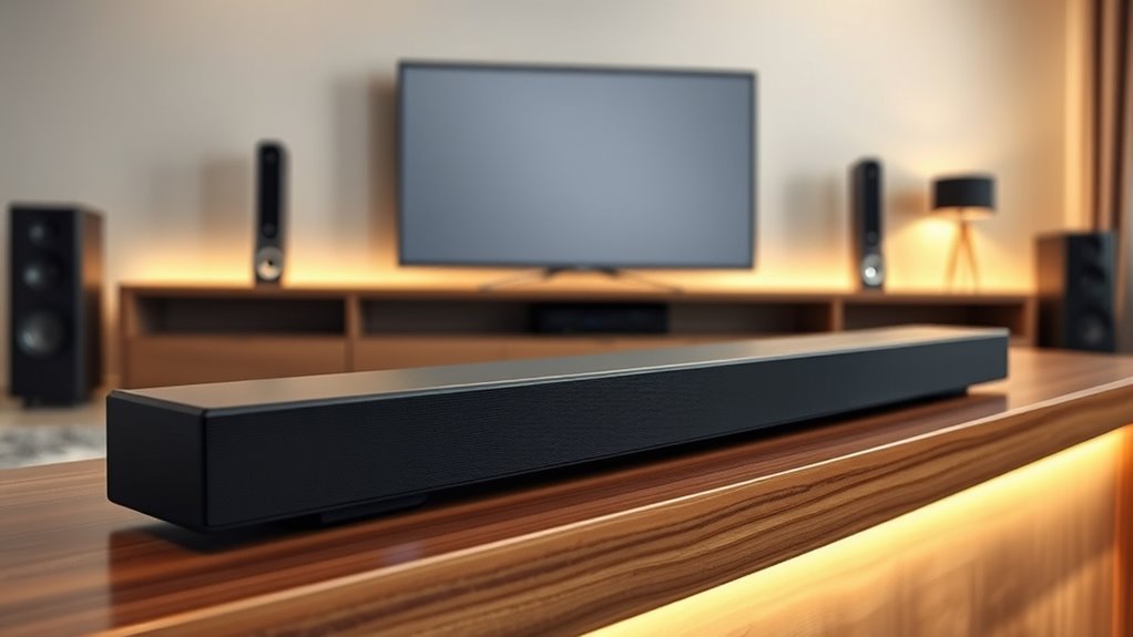 Think of your soundbar as a modern orchestra conductor. It does support voice control and can integrate with your smart home systems, making management effortless. You can command it to adjust volume, change modes, or switch inputs with your voice, creating a seamless entertainment experience. This smart integration elevates your setup, allowing you to focus on enjoying your favorite content while the soundbar responds intuitively to your commands.