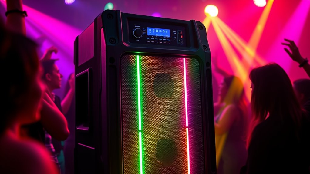 The Soundcore Rave 3S Party Speaker offers exciting AI karaoke features that let you sing along and enjoy customized voice effects. Its beat‑synced LEDs create vibrant light shows that match your music’s rhythm, boosting the party atmosphere. With powerful sound, durable design, and easy Bluetooth connection, you’ll get hours of fun anywhere. Want to discover how these features combine for unforgettable gatherings? Keep going for all the details.