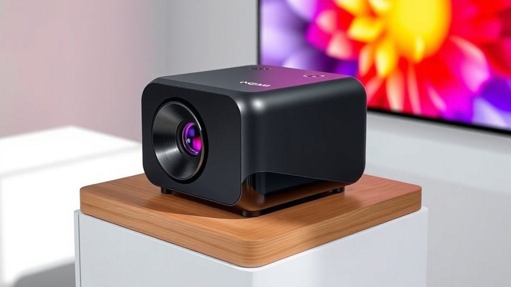 The XGIMI Playcube projector offers a portable, compact design that’s perfect for on-the-go entertainment. Its twistable speaker provides adjustable sound to enhance your viewing experience, whether indoors or outdoors. You can project a stunning 150-inch picture, transforming any space into a home theater. With easy wireless streaming and quick setup, it’s designed for convenience. Keep exploring to discover more about how this versatile projector can fit your lifestyle and entertainment needs.