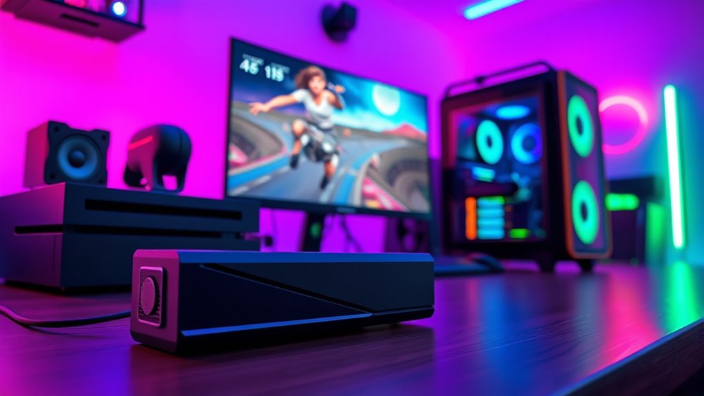 Imagine a lightning-fast race—internal capture cards are like sprinters, offering near-zero latency because they connect directly inside your PC, making your gameplay feel instant. External cards, while slightly slower, are like relay runners, with minimal but noticeable delays due to USB transfer. For the smoothest experience, internal cards are ideal, especially if you’re aiming for real-time streaming without lag.