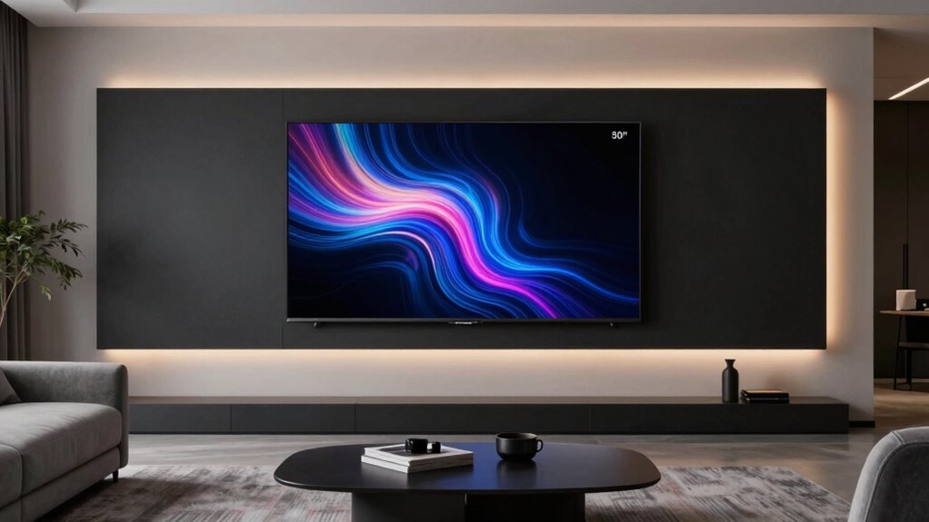 Are you aware of how different display technologies can dramatically affect your viewing experience on a 50-inch TV? Each tech offers unique benefits. LED displays are the most common, providing bright images and energy efficiency, but they may fall short in contrast. QLED and Mini-LED screens improve on this with richer colors and better contrast thanks to quantum dot technology and local dimming. OLED displays stand out with perfect blacks and wide viewing angles, thanks to self-emitting pixels, though they usually come at a higher price. QD-OLED combines many advantages for top-tier performance. Your choice should depend on your viewing habits and environment, as each technology impacts color depth, contrast, and overall picture quality differently. Picking the right display tech guarantees your TV suits your preferences perfectly.