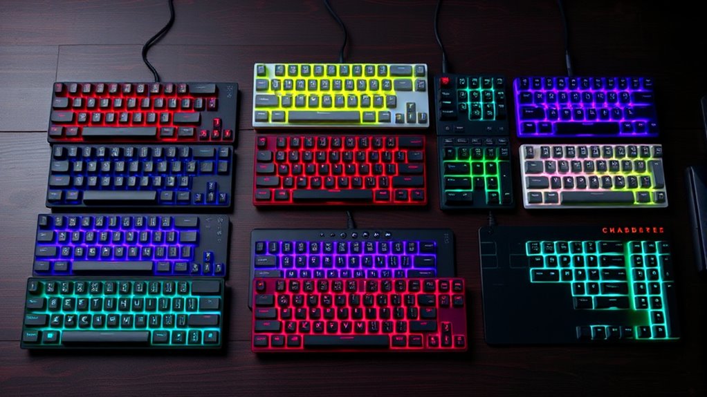 Yes, 75% keyboards can accommodate most keycap types, but it’s crucial to check compatibility first. I’ve found that they usually support standard keycap profiles like OEM, Cherry, and SA, but some custom or thicker keycaps might not fit perfectly due to space constraints. If you’re into customizing your keyboard, I recommend verifying the keycap dimensions and stem compatibility to guarantee a perfect fit.