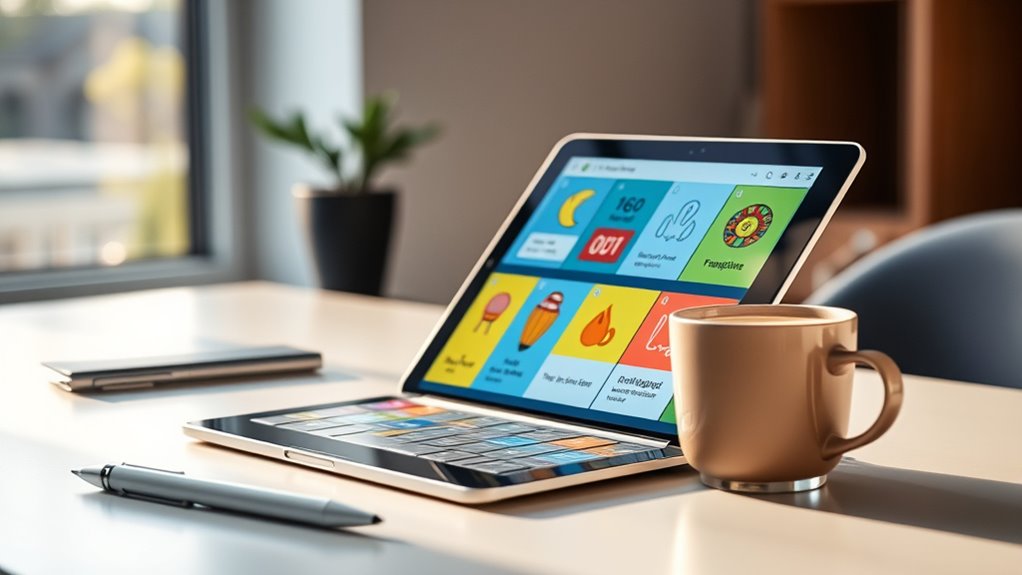 A user-friendly interface is essential for making AI flashcards effective and enjoyable to use. An intuitive layout with clear navigation menus helps me find and organize cards quickly, reducing confusion. Responsive design guarantees I can study seamlessly across devices like tablets and smartphones, no matter where I am. Visual cues such as icons and color coding make it easy to recognize categories or topics at a glance, speeding up my review process. Minimalist layouts cut down on clutter, so I can focus entirely on the content without unnecessary distractions. Additionally, customization options for font size, background color, and layout improve accessibility, especially if I have visual impairments or specific learning preferences. Overall, a well-designed interface makes learning smoother and increases my motivation to keep studying.