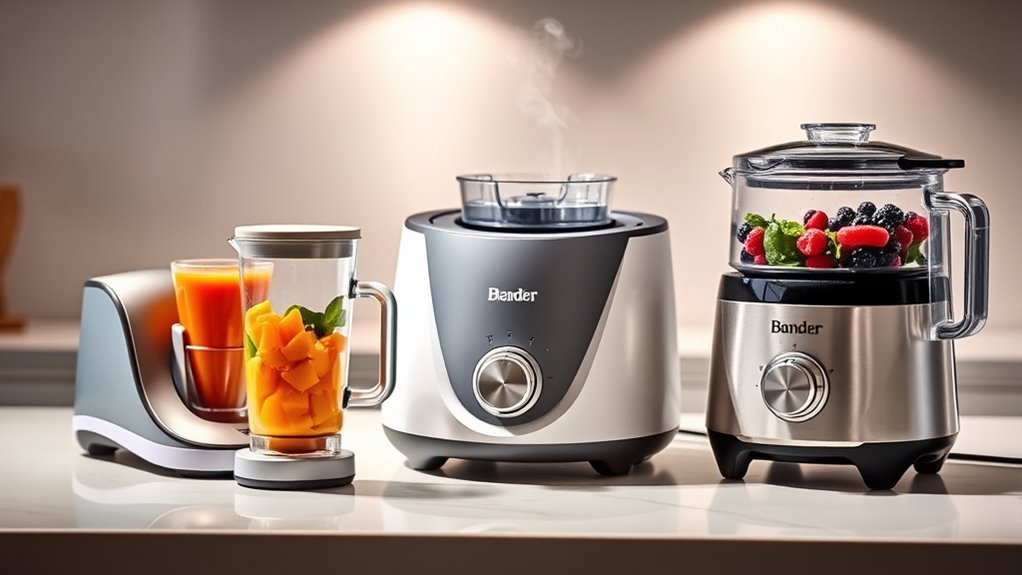A baby food maker that offers multiple functions can substantially simplify meal prep, saving time and reducing the need for separate appliances. Look for devices that combine steaming, blending, and reheating, which streamline the process from preparation to serving. Adjustable settings for texture and consistency are essential, as they help tailor purees to your baby’s developmental stage. Some models come with preset programs for specific foods like fruits, vegetables, or meats, making it easier to achieve consistent results. Multi-function appliances may also include features like sterilizing, defrosting, or bottle warming, providing a thorough feeding solution. Choosing a device with interchangeable or multi-purpose accessories can enhance its utility, allowing you to prepare not only baby food but also family meals with the same appliance.