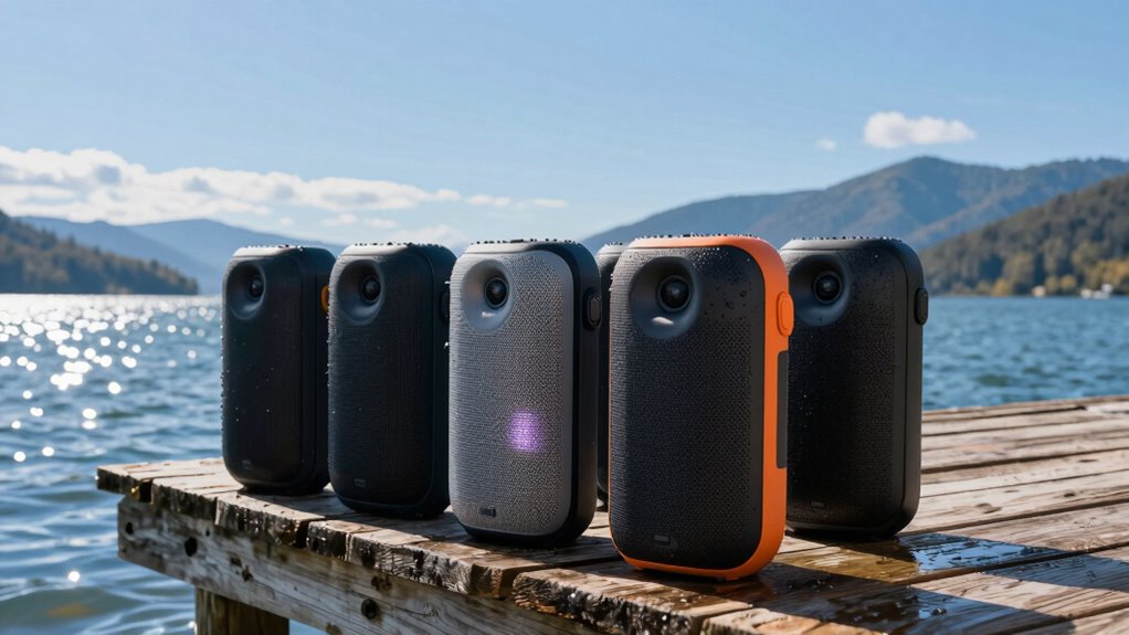 If you’re like me, finding a waterproof Bluetooth speaker means peace of mind on outdoor adventures—imagine taking your JBL Charge 5 to the beach, knowing it can handle splashes and even serve as a power bank. With so many durable options, you can enjoy your tunes worry-free, whether hiking, poolside, or camping. Just pick one that fits your needs, and let your music keep flowing no matter where life takes you.