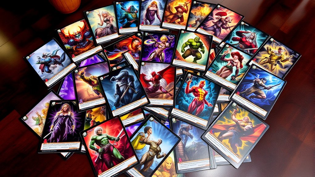 Understanding card rarity levels is essential for evaluating a collectible trading card game’s value and appeal. Rarity categories like common, uncommon, rare, super rare, and ultra-rare increase in scarcity and desirability, often boosting a card’s worth. Higher rarity cards, such as mythic rares or limited editions, are tougher to find and can markedly enhance a collection’s value. The chances of pulling these rare cards from booster packs are usually low, sometimes as rare as 1 in 1200 packs, making them highly sought after. Special foil, autographed, or limited-edition cards also fall into higher rarity levels, adding exclusivity. Rarity directly impacts a card’s trade value and appeal, making it a vital factor when choosing which game to collect.