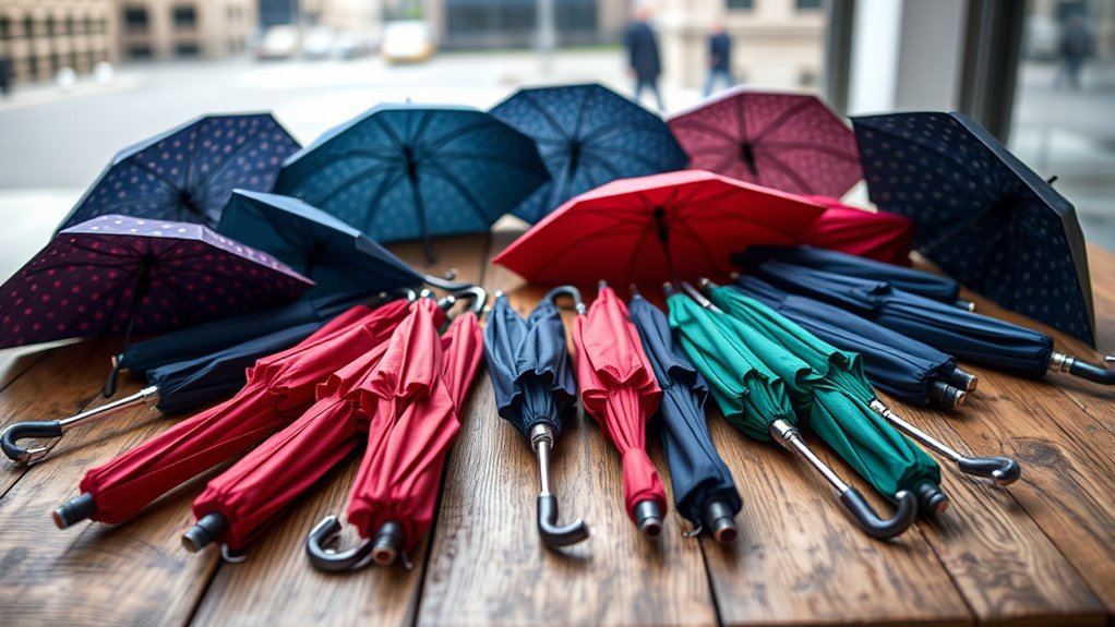 Think of choosing a compact travel umbrella like selecting a trusty sidekick for your adventures—small, reliable, and ready to shield you from unexpected storms. With the right one, you’ll never be caught off guard again. So, pick the umbrella that feels like a dependable companion, and let it stand by your side, rain or shine. After all, the right umbrella is your personal umbrella fortress, always ready to keep you dry and stylish.