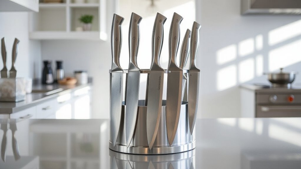 Choosing the right countertop knife holder is like picking the perfect partner—it keeps everything in harmony and within reach. Whether you prefer magnetic, wooden, or space-saving designs, there’s a perfect fit for your kitchen’s rhythm. Remember, a great knife holder not only keeps your blades sharp and organized but also adds a touch of style to your space. Trust your instincts, and you’ll find the one that feels just right—your kitchen’s new best friend.