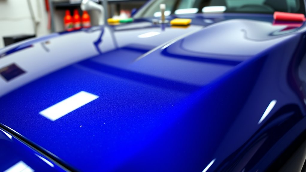 Choosing the right DIY ceramic coating kit starts with guaranteeing it’s compatible with your vehicle’s surfaces. First, check if the product works with your paint type, whether it’s a single-stage or clear coat finish. If you plan to coat other areas like plastic trim, glass, wheels, or headlights, verify that the coating is suitable for those surfaces too. It’s important to confirm if the product is safe for matte, satin, or textured finishes to avoid unwanted gloss or damage. Additionally, review its chemical compatibility with existing waxes, sealants, or paint protection films to prevent adhesion issues. Always follow the manufacturer’s surface preparation guidelines, such as cleaning or paint correction, to ensure ideal bonding. Proper compatibility guarantees a smooth application and lasting protection.