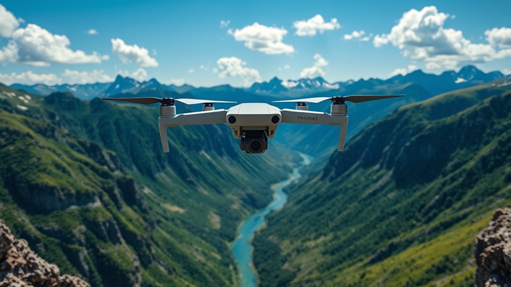 Longer flight times are essential for capturing extensive aerial footage without constantly swapping batteries or risking interruptions. Most drones with 4K cameras offer between 20 to 40 minutes of flight per battery, while some advanced models can go over an hour. Battery capacity and efficiency are key factors—higher mAh ratings typically mean longer flying time. Using multiple batteries and quick-charging tech can also extend your flying sessions, making your shoots more seamless. Keep in mind, environmental conditions like wind and payload weight can reduce flight time, so it’s worth considering these factors. By choosing a drone with a longer-lasting battery or supplementary power options, you’ll enjoy more freedom and flexibility when capturing stunning aerial footage without frequent stops.