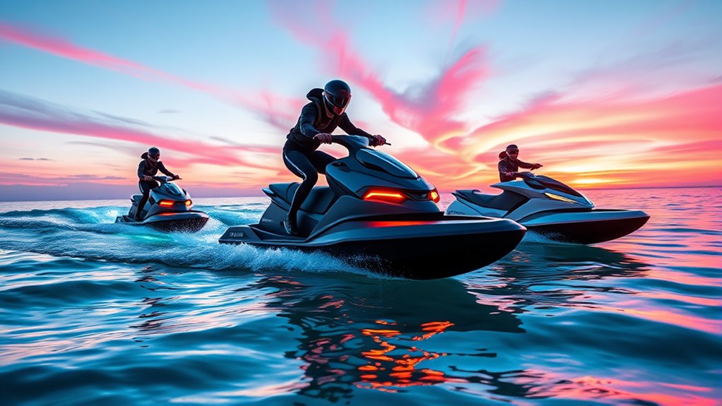 On a single charge, electric jetboards usually last between 30 to 60 minutes, depending on factors like rider weight, speed, and water conditions. I find that lighter riders and moderate speeds help extend battery life, letting me enjoy longer sessions. Always check the manufacturer’s specs and consider upgrading batteries if you want more runtime. Proper maintenance and mindful riding can also make your jetboard last longer on each charge.