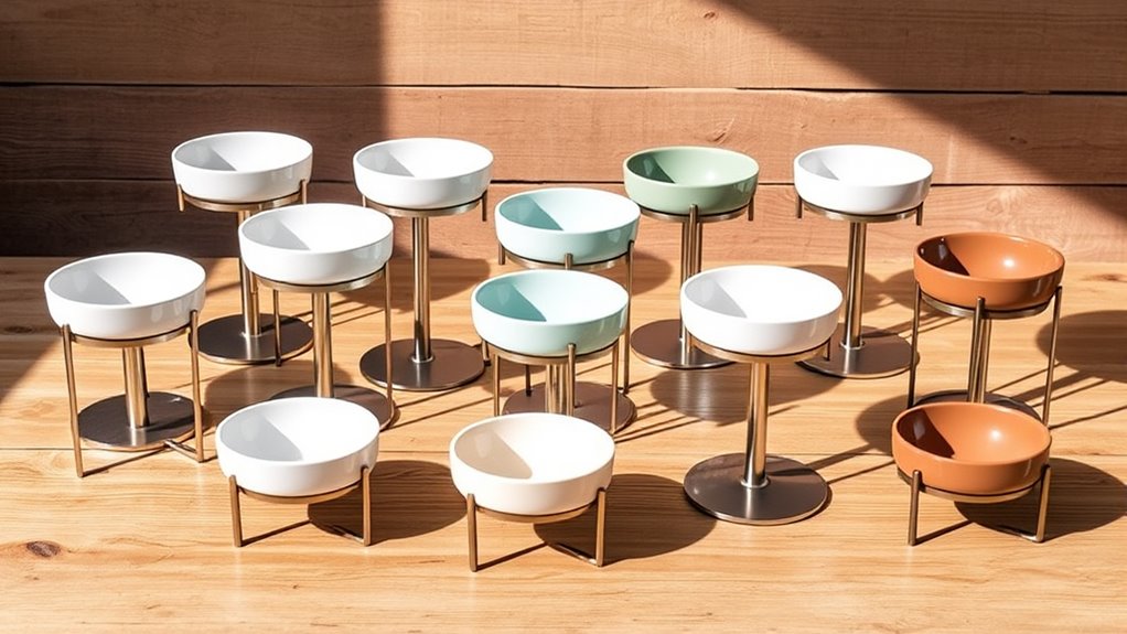 Choosing the right elevated pet bowl is like planting a sturdy, healthy tree—supporting your pet’s comfort and well-being. An adjustable stand acts as the nurturing soil, allowing growth and adaptability. When you pick the perfect bowl, you’re crafting a safe, stable foundation where your pet can thrive. Remember, a well-chosen bowl isn’t just a dish—it’s the roots of a happier, healthier life for your furry friend.