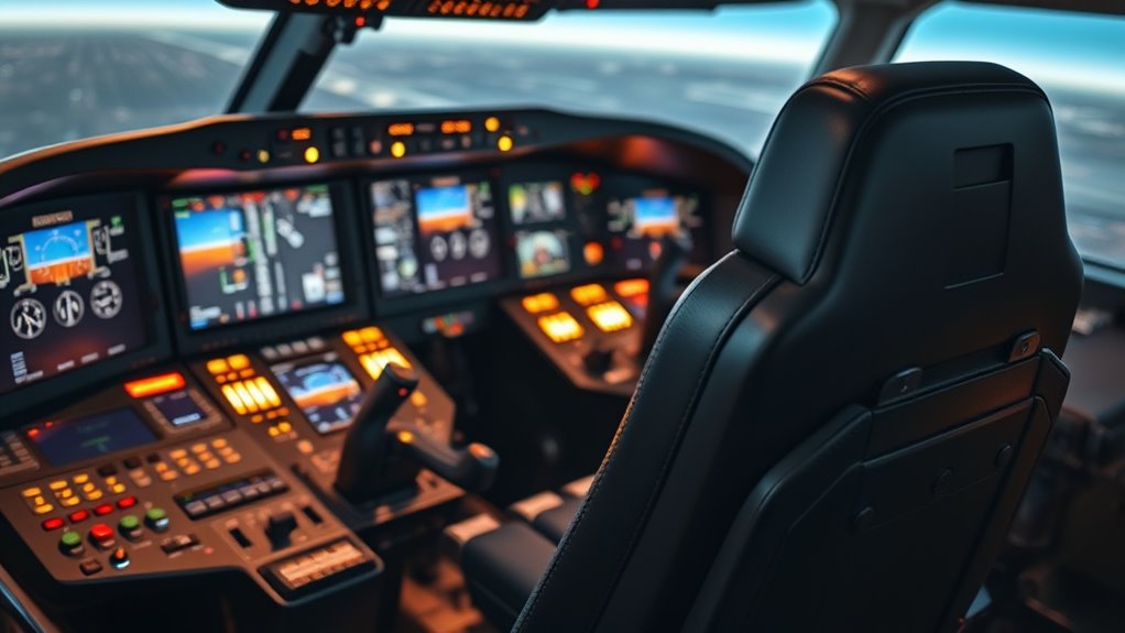 They say safety is no accident, and advanced flight simulator cockpits reflect that. I’ve found they include features like sturdy construction, non-slip pedals, and integrated warning systems that alert me to issues. Some even have adjustable seats and secure harnesses, making the experience more realistic and safe. These features give me peace of mind, allowing me to focus on mastering my skills without worry.