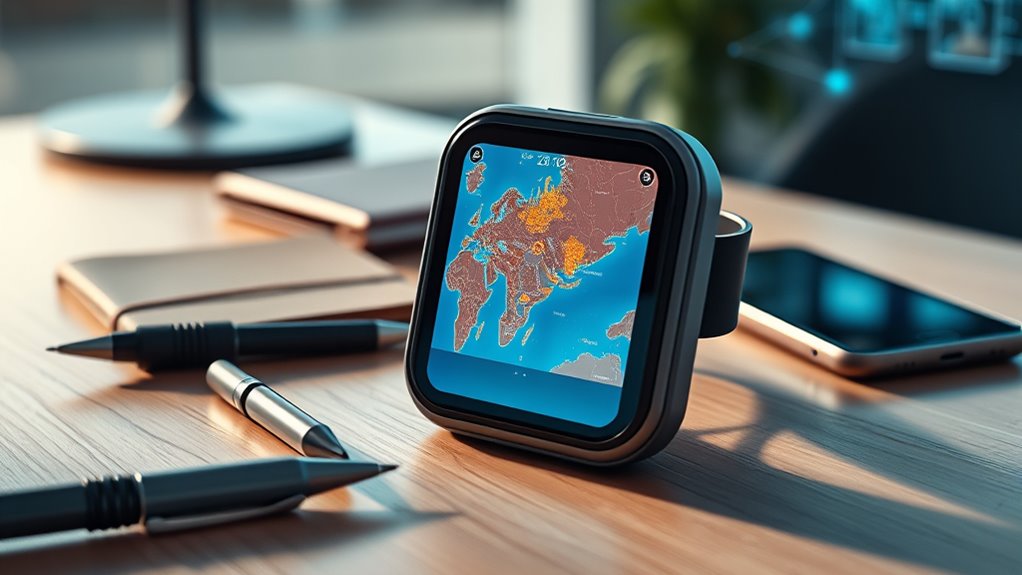 Choosing a GPS tracker requires careful attention to its connectivity options to guarantee reliable performance. I look for devices that support essential network technologies like GSM, LTE, or satellite, especially if I need coverage in remote areas or across multiple countries. It’s important to verify if the tracker uses crowd-sourced networks such as Apple Find My or proprietary cellular services for real-time updates. I also consider whether it offers Wi-Fi or Bluetooth, which are useful for close-range monitoring and device pairing. Compatibility with my smartphone’s operating system, whether iOS or Android, is vital for seamless access. Ensuring these connectivity options align with my tracking needs helps me stay connected reliably, no matter where I am.