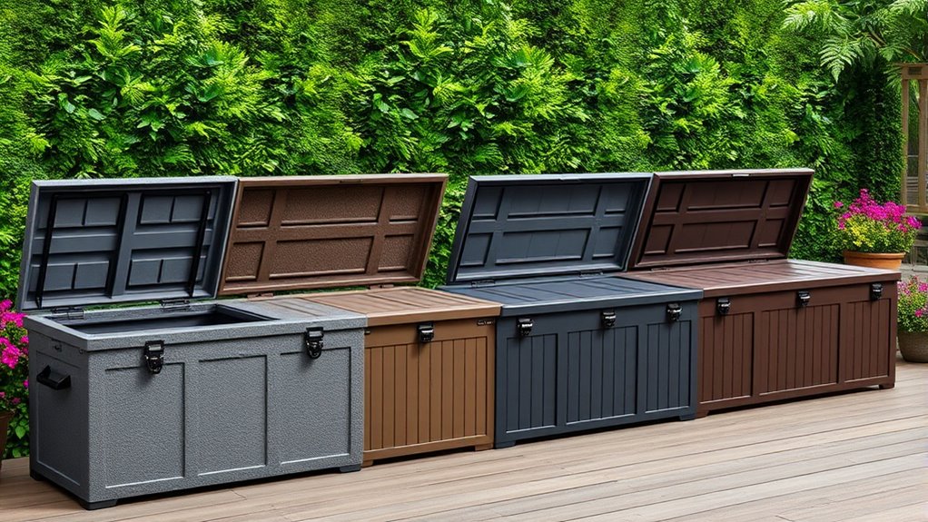 Did you know that over 60% of outdoor storage solutions lack proper security features? I can tell you these deck boxes often come with lockable lids or built-in locks, giving you peace of mind. Many are designed specifically for security, so you can store valuable equipment safely. I personally find lockable features essential for outdoor storage, especially in busy or exposed areas, ensuring your belongings stay protected from theft or unauthorized access.