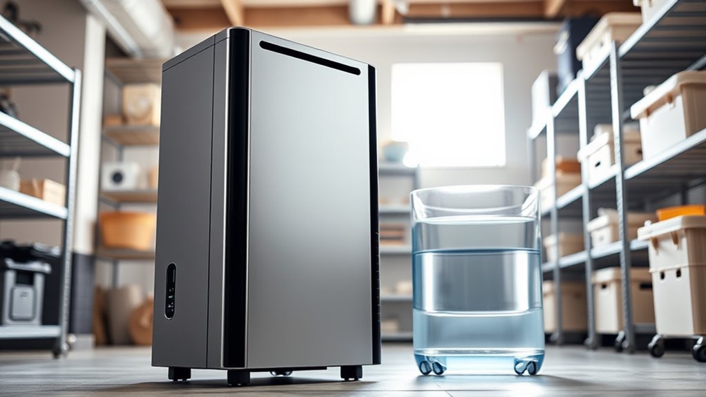 If you’re looking for the best high-capacity dehumidifiers to keep large spaces dry and comfortable, I’ve found some great options. From units that cover up to 4500 sq.ft. with smart controls to compact designs for smaller areas, there’s a model for every need. These dehumidifiers feature energy-efficient technology, high moisture removal rates, and user-friendly features like auto shut-off and smart connectivity. Keep going, and you’ll discover detailed insights to help you find the perfect fit for your space.