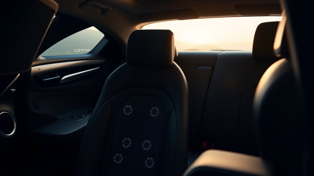 If you want to elevate your drive with a spa-like experience, high-end car seat massagers are the way to go. I recommend models featuring shiatsu, air compression, heat, and even cooling functions for full relaxation. These devices fit most car seats securely and offer customizable massage modes to target your back, neck, and hips. If you keep exploring, you’ll find top options that turn any commute into a soothing retreat.