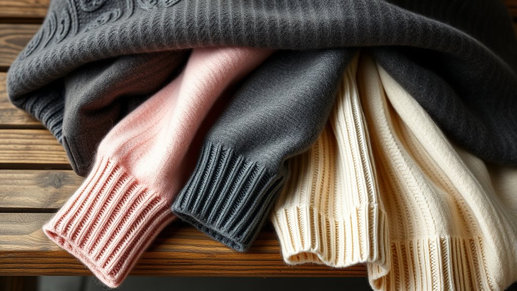 Don’t worry, caring for luxury cashmere sweaters is simpler than you think. I always hand wash mine with gentle, wool-safe detergent and avoid wringing to keep the fibers intact. I lay mine flat to dry, avoiding direct heat, and store them folded in a breathable container. Regularly brushing with a cashmere comb keeps them looking fresh, ensuring they stay soft and luxurious for years.
