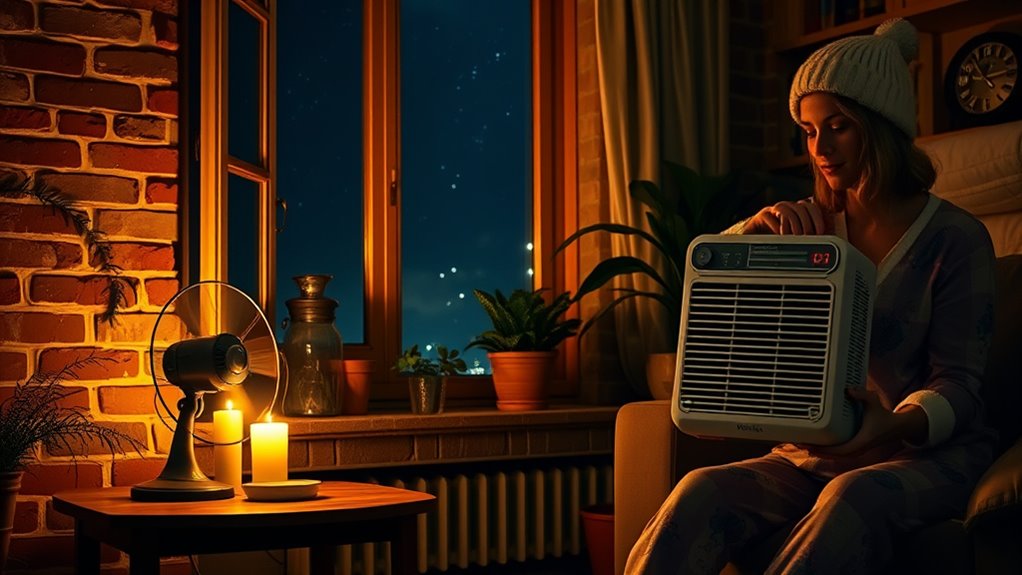 Effective air circulation during a blackout can substantially cut down on energy use by reducing the need for electric cooling or heating systems. When I open windows safely, I promote natural ventilation, which exchanges indoor air without increasing energy consumption. Using manual or battery-operated fans boosts airflow without adding to the home’s energy load, making them a smart choice. Sealing drafts and using window coverings help maintain a comfortable indoor temperature, decreasing reliance on energy-intensive climate control devices. These strategies not only improve air quality but also help conserve power during outages. By focusing on efficient air circulation, I can keep my home comfortable without overtaxing limited energy resources, ultimately reducing my overall energy footprint during blackouts.