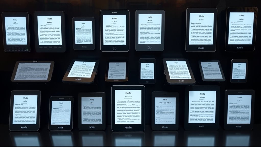 As I explore different Kindle models, I pay close attention to their content compatibility and support for various formats. It’s essential that the device handles common formats like AZW3, MOBI, PDF, and TXT effortlessly. If I enjoy listening to audiobooks, I check whether it supports formats like AAX or MP3. Compatibility with subscription services like Kindle Unlimited is a big plus, giving access to a vast library across supported formats. I also verify how easily I can transfer content via email, USB, or cloud storage—smooth content management makes a difference. Additionally, features like font customization and adjustable display settings improve readability for different content types. Ensuring these aspects work seamlessly helps me enjoy my reading and listening experience without hassle.