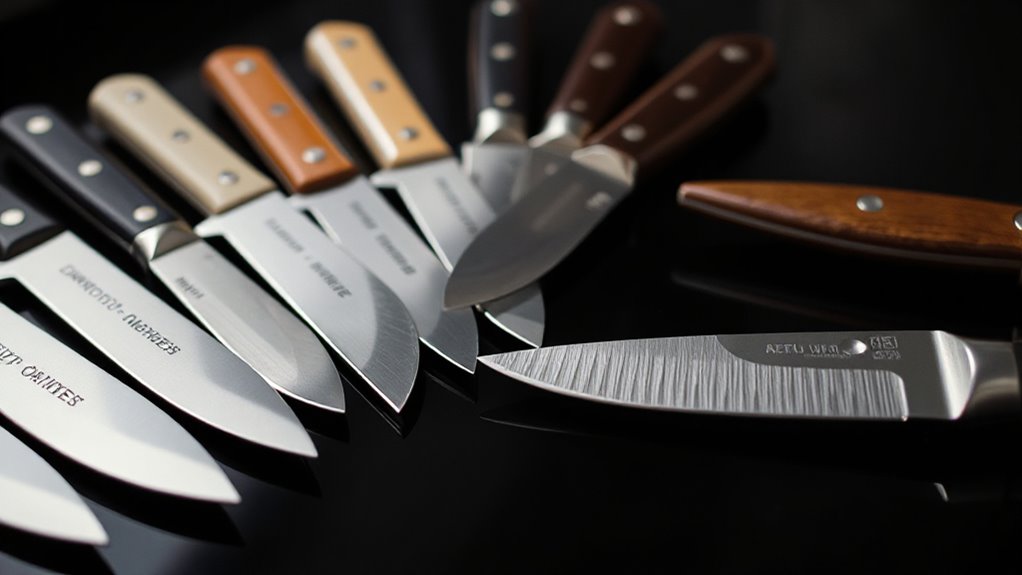 Blade types greatly influence cutting precision because each design suits different tasks. I find that thinner, sharper blades like those on a paring knife give me more control for delicate cuts, while thicker, sturdier blades like chef’s knives handle tougher materials better. The edge angle also matters—more acute angles provide cleaner cuts, but may be less durable. Choosing the right blade depends on the material and the level of precision I need.