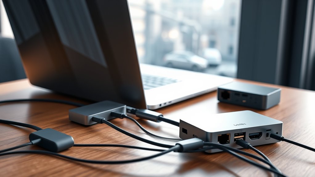 Compatibility issues can seriously impact docking station performance by causing connectivity problems, limited functionality, or even hardware damage. When my devices aren’t fully compatible, I often face slow data transfer, unrecognized peripherals, or unstable connections. To avoid this, I always double-check the docking station’s specifications against my laptop or device. Ensuring compatibility guarantees smooth operation, faster productivity, and minimizes frustration caused by hardware conflicts.