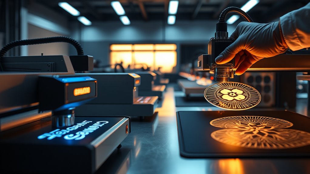 When selecting a laser engraver, paying attention to its software and connectivity options is essential for a smooth workflow. I look for machines that support popular software like LaserGRBL, LightBurn, or proprietary programs such as xTool Creative Space, ensuring versatile design options. Multiple connectivity options, including USB, Wi-Fi, Ethernet, or SD card slots, are vital for flexible file transfer and remote operation. I also check if the engraver supports offline work via memory cards or control panels, so I can operate without constant internet or a computer connection. Compatibility across operating systems like Windows, macOS, and Linux is important for seamless use. Additionally, app control and mobile connectivity enhance convenience, allowing me to monitor and control the device remotely, which improves safety and efficiency.