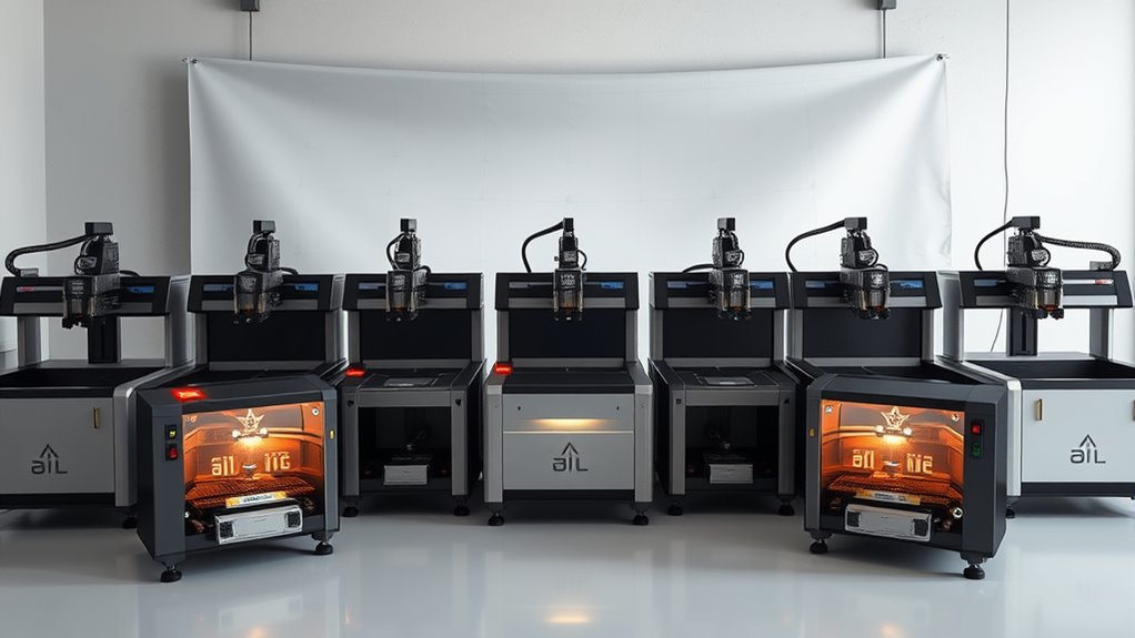 In 2025, the top laser engravers offer a wide range of power, speed, and precision to meet various needs. From compact, portable models like the Ray5 Mini to powerful cutters like the LONGER RAY5 with 20W or more, there’s an option for hobbyists and professionals alike. Features like auto-focus, large workspaces, and offline control make these machines versatile. If you want to discover the best picks and key features, keep exploring further.