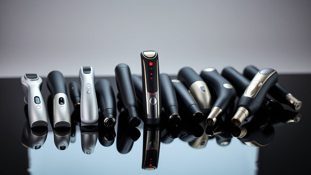 Choosing a laser hair growth device that’s easy to operate makes treatment sessions smoother and more effective. Devices with one-button controls or simple interfaces allow me to start treatments quickly without fuss. Wireless or cordless designs add convenience, so I don’t have to deal with tangled cords or complicated setups. Clear instructions, visual indicators like charging lights, and session timers boost confidence, ensuring I know exactly when to start or stop. Lightweight, ergonomic designs reduce fatigue, making it easier to stick to my routine consistently. Automatic features, such as sensors that activate only when worn correctly or auto timers, simplify the process further. Overall, user-friendly devices save time and frustration, helping me stay committed to my hair growth goals.