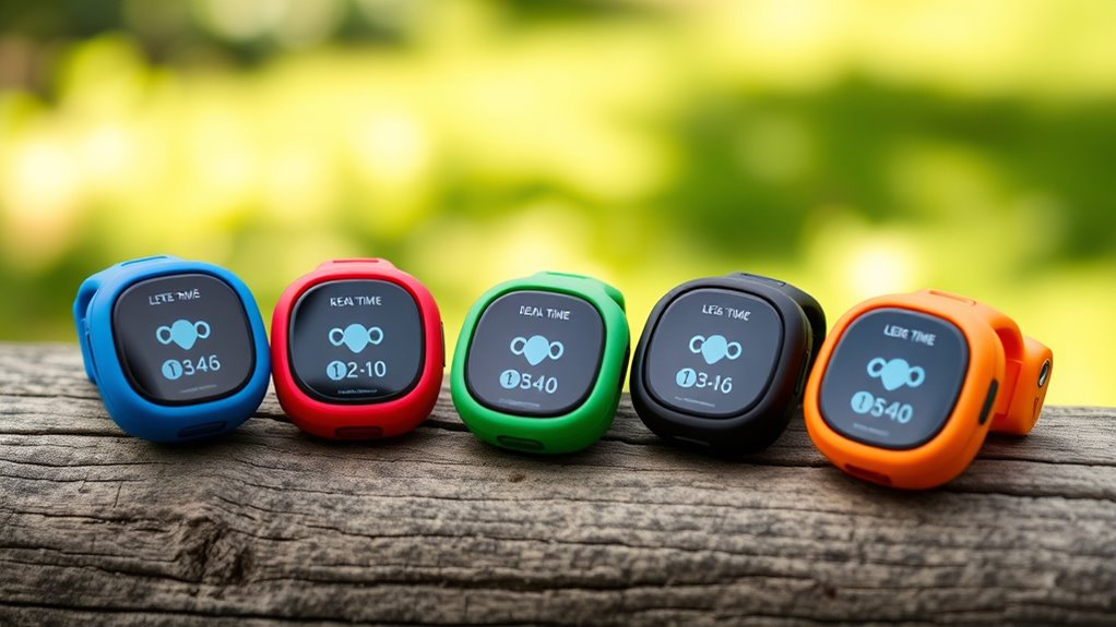 To make sure you’re always informed about your pet’s activities, look for LTE GPS trackers that offer customizable alert features. These allow you to receive specific notifications, like boundary breaches or unusual activity, tailored to your preferences. Many trackers let you choose alert types such as sound, vibration, or app notifications, giving you flexibility. Setting different alert thresholds—like speed limits or activity levels—helps you customize alerts based on your pet’s behavior and environment. Some devices even support multiple geo-fences, each with its own alert settings for different zones. Additionally, scheduling options let you receive alerts only during certain times or days, preventing unnecessary notifications and ensuring you stay informed when it matters most.