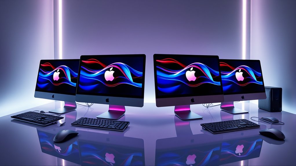 If you’re a power user aiming for top-tier performance in 2025, four Mac Studio models stand out with 128GB or more of unified memory. These include configurations with Apple’s latest M3 Ultra or M4 chips, designed for heavy multitasking, 3D rendering, and large-scale workflows. I’d recommend considering models with extensive connectivity options and future-proof features. If you want the full breakdown of these top picks, I’ll share more details shortly.