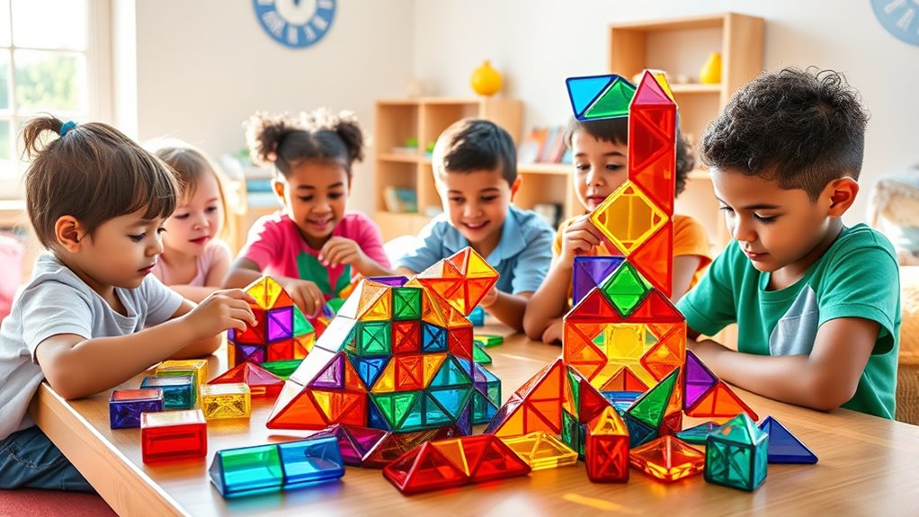 Have you ever wondered how magnetic tiles can boost your child’s learning? These toys do more than entertain—they promote essential STEM skills by improving spatial awareness, engineering understanding, and grasping geometric concepts. They also support fine motor development as children carefully manipulate small pieces, enhancing hand-eye coordination. Beyond STEM, magnetic tiles spark creativity and problem-solving, encouraging kids to experiment and build freely. They foster critical thinking as children plan and refine their structures. Plus, playing together helps develop social skills and teamwork. High-quality tiles are durable and safe, ensuring long-lasting educational benefits without worry about breakage or toxins. Overall, magnetic tiles are a powerful tool for holistic learning, blending fun with foundational skills that support a child’s growth and curiosity.