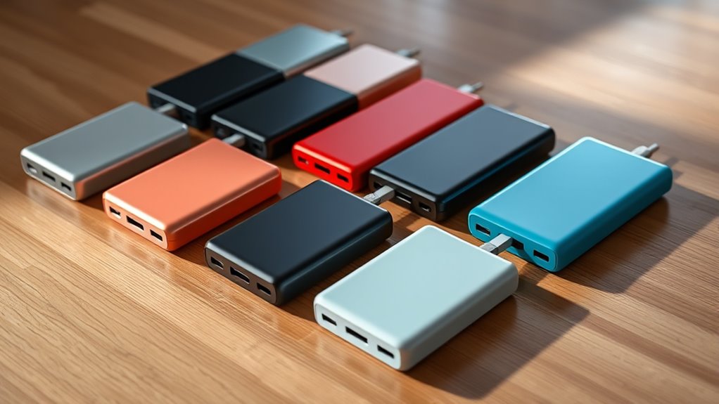 When selecting a MagSafe power bank, I consider factors like device compatibility, battery capacity, and charging speed to guarantee it meets my needs. I also look at portability and design so I can carry it comfortably, along with safety features and certifications for peace of mind. These points help me choose a power bank that’s reliable, efficient, and convenient for everyday use.