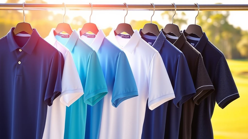 Just like a trusty sherpa guiding you through rugged terrain, the right moisture-wicking golf polo keeps you cool and dry under pressure. With so many great options, you can find one that feels like a second skin, helping you focus on your swing instead of your sweat. Remember, the perfect polo isn’t just clothing—it’s your secret weapon on the course, turning sweat into nothing but a distant memory.