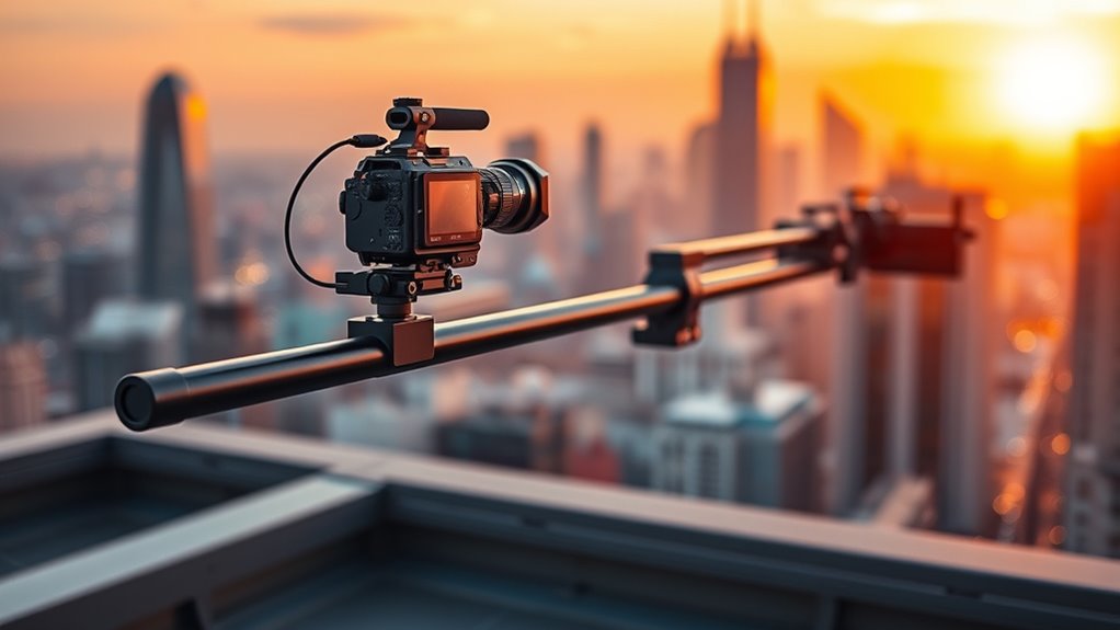 Motorized sliders guarantee smooth, jitter-free footage by using precise motors and advanced control systems that stabilize camera movement. I rely on features like adjustable speed settings and programmable motion paths to create fluid shots effortlessly. The built-in dampers and high-quality rails reduce vibrations, making my footage look professional. Overall, these sliders provide consistent, steady motion, allowing me to focus on my creativity without worrying about shaky footage.