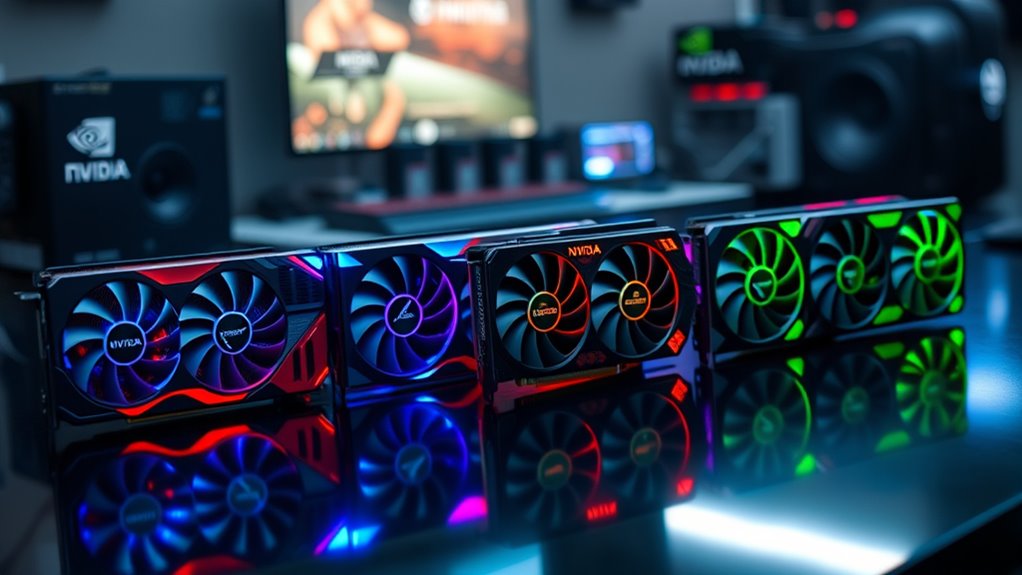 When choosing a Nvidia graphics card, I consider factors like performance, compatibility, and cooling to guarantee it meets my needs. Price and power requirements also play a big role in making the right choice. Let’s explore these points to help you find the best card for your setup.