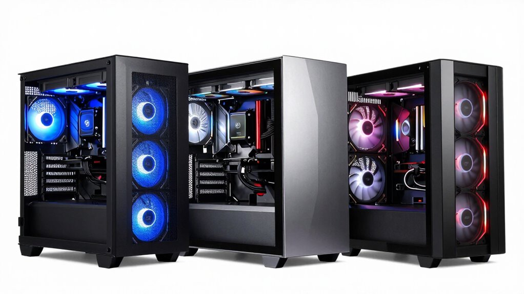 Choosing the right case is like selecting the perfect vessel for your VR adventures—each one shaping the journey ahead. With these top airflow options, you’re equipping your build to breathe freely and perform flawlessly, even in the most demanding virtual domains. Trust me, a well-ventilated case isn’t just a container; it’s the heartbeat that keeps your VR dreams alive and thriving, ensuring your system’s cool under fire.