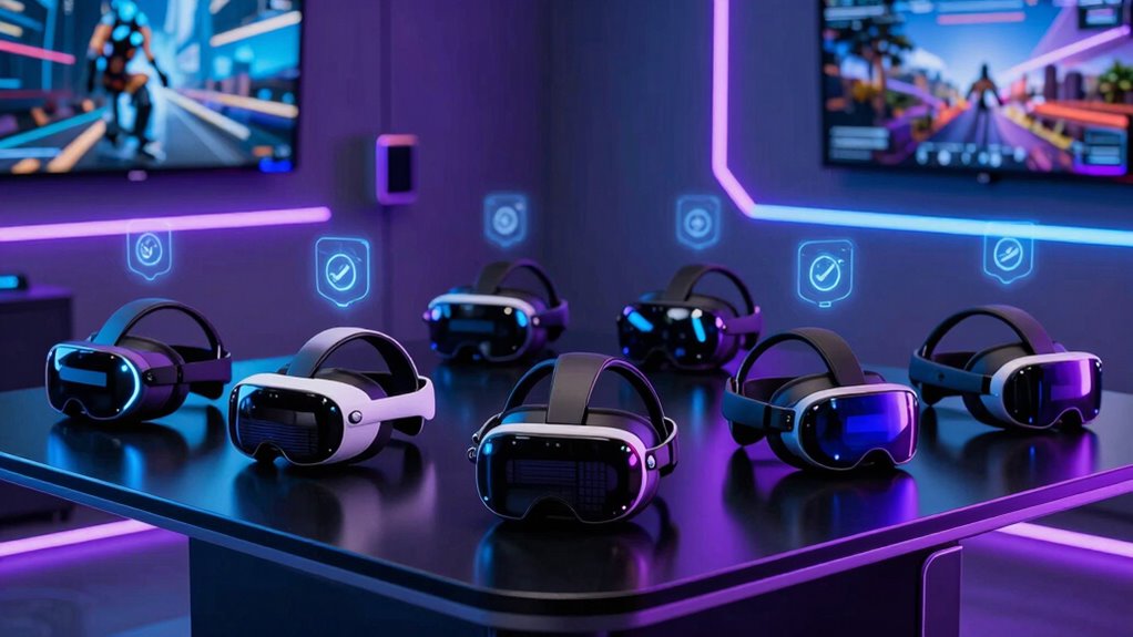 When selecting a PCVR headset for SteamVR, tracking precision should be at the top of your list. Accurate tracking relies on either inside-out sensors or external cameras that offer 6DoF, capturing all six degrees of movement. More sensors or cameras usually mean better accuracy, reducing latency and improving positional stability during fast or complex actions. The quality of the tracking algorithm also matters—advanced systems deliver smoother, more reliable results with fewer errors. Additionally, keeping firmware updated is vital; outdated software can cause drift or data loss. Environmental factors like lighting, reflective surfaces, or obstructions can negatively impact tracking. Ultimately, choosing a headset with robust hardware, high-quality tracking tech, and a stable software ecosystem ensures a seamless, immersive experience.