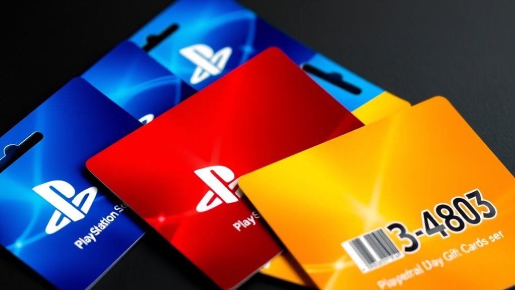 Choosing the right PlayStation Store gift card involves guaranteeing compatibility with your specific console and region. First, confirm that the card matches your PlayStation console model, whether it’s a PS4 or PS5, to avoid redemption issues. Next, verify that the card’s region aligns with your PlayStation account’s region; mismatched regions can prevent the code from working. Additionally, make sure the gift card is valid for your country or territory’s PlayStation Store. Check if the digital code format is supported by your device, as some cards require specific apps or platforms for redemption. Finally, ensure the denomination suits your intended purchase and that it’s accepted locally. Paying attention to these factors helps prevent compatibility problems and ensures a smooth gifting or purchasing experience.