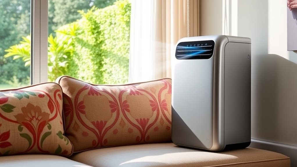 Imagine stepping into a breezy room on a humid summer day—that’s how well these portable air conditioners work in high humidity. I’ve found they effectively reduce moisture and cool the air, thanks to strong dehumidifying functions. While no unit can completely eliminate humidity, these models markedly improve comfort, making stuffy, damp spaces feel fresh and inviting. They’re a dependable choice for maintaining a cool, dry environment.