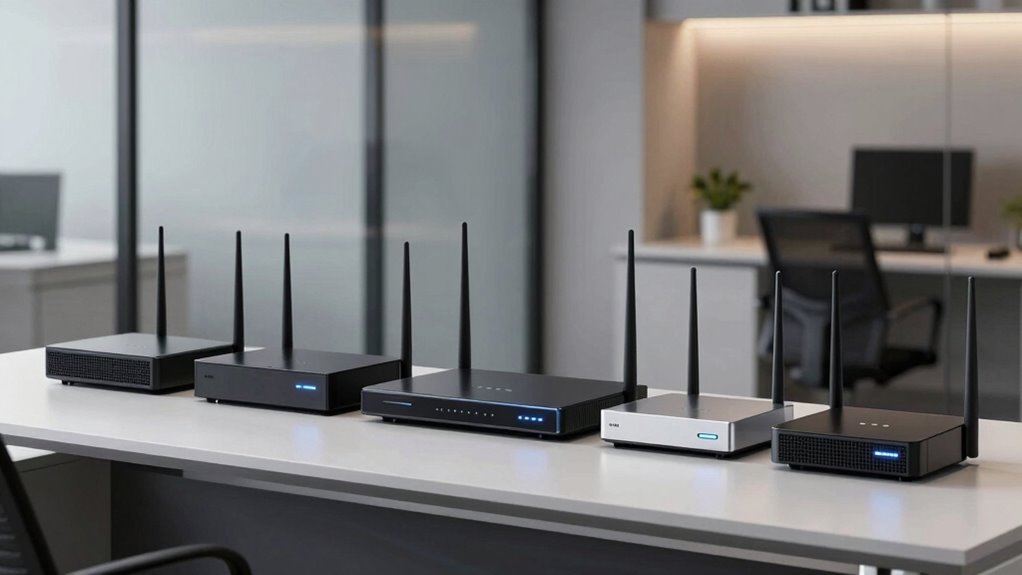 You might wonder if these routers can keep up with your business growth. The truth is, they’re quite scalable—many support multiple VLANs, high-speed connections, and firmware upgrades to handle extra devices. But as your needs grow exponentially, you’ll want to contemplate models with extensive port options and robust processing power. Planning ahead now ensures your network stays smooth and reliable, no matter how big your business gets.
