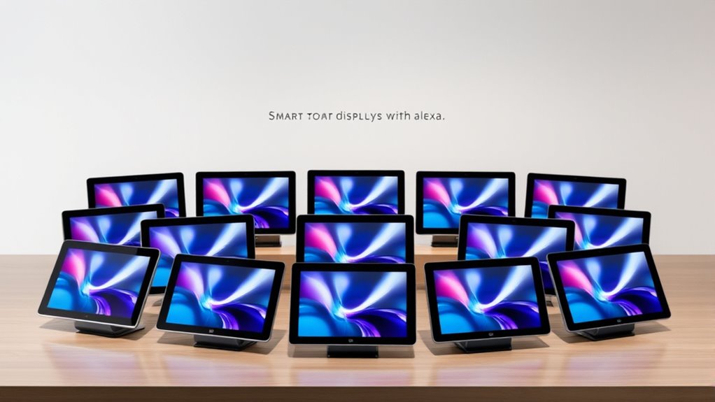If you’re searching for the 15 best premium smart displays with Alexa in 2025, I’ve got you covered. From compact 5.5-inch models to large 21-inch screens, these displays combine stunning visuals, immersive sound, and seamless smart home integration. They support streaming, video calls, security, and privacy controls—all designed to elevate your home experience. Stick around, and you’ll discover detailed insights to help you choose the perfect device for your needs.